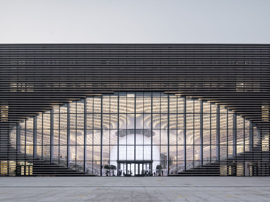 世界上有很多特別的圖書館,最近,大陸天津濱海新區文化中心就建起了一座名為「濱海之眼」的公共圖書館。這棟建築呈現巨大的長方形,不管是外觀還是內部設計都很特別。