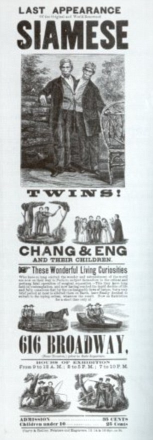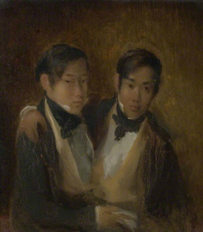 ▼恩和昌的爸爸是中國人,媽媽是泰華混血兒。這對兄弟的腹腔由一塊肉和一塊軟骨連在一起,當時的人不明白為什麼會這樣,還以為他們被詛咒了。但這兩個男孩非常健康,能夠跑步、游泳、划船,還會幫父母打理生意。