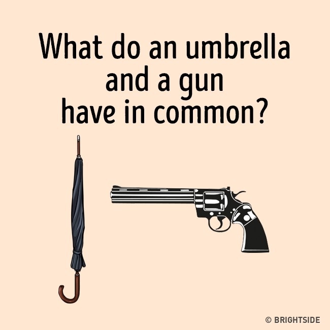 ▼2.「雨傘」和「手槍」有什麼共同點?