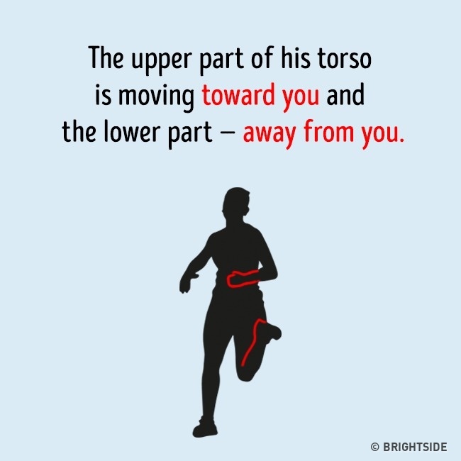 ▼4.這幅圖有問題,圖中人手臂的動作是在「跑向你」,腿部的動作是在「逃離你」。