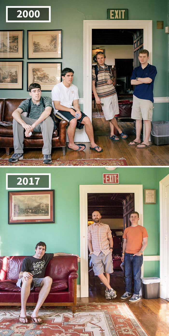 2017年11月18日好像一眨眼間,幾年就過去了。我們以為自己沒變,其實時間早已經將我們變得面目全非。去年時,攝影師Josephine Sittenfeld準備參加大學同學聚會,她記起2000年,自己在普林斯頓大學上學期間,為同學們拍攝的照片。她決定找機會再給大家拍一張,展示17年來的變化。