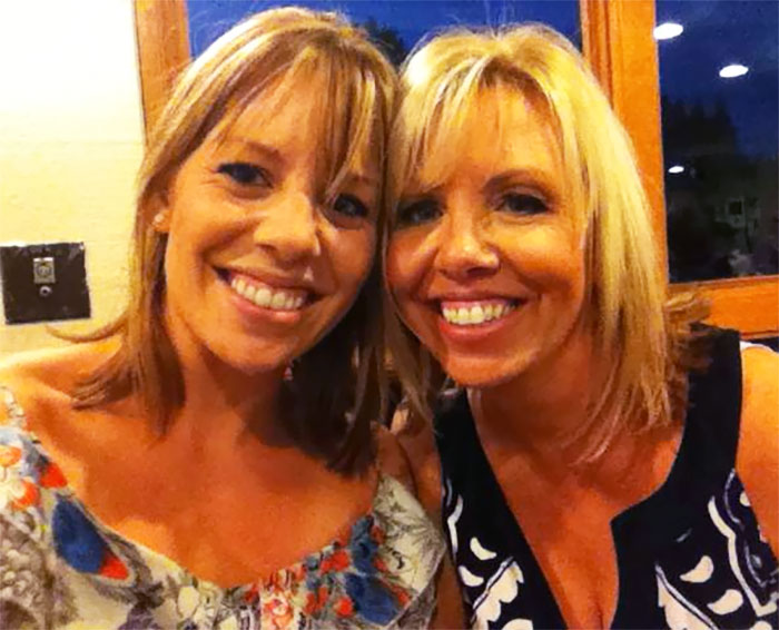 ▼43歲的媽媽(左)和雙胞胎女兒。