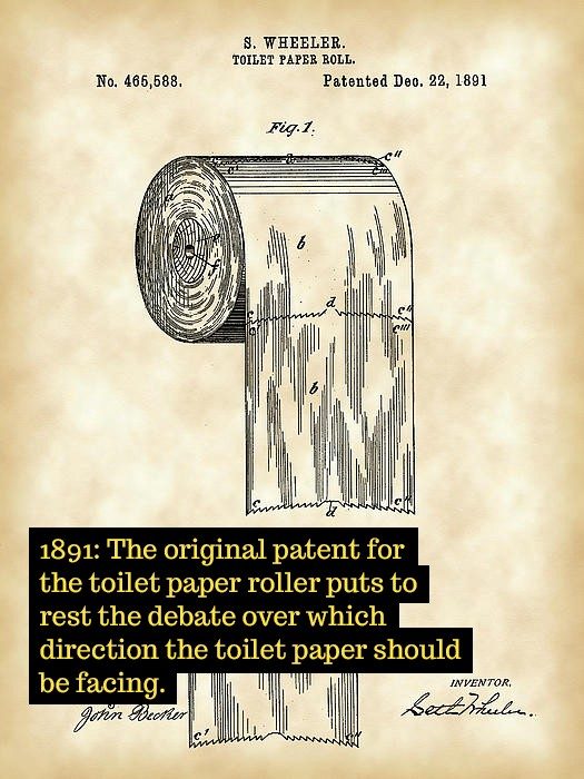 ▼「衛生紙方向該朝哪一面」,一直以來都是個有爭議的問題,直到1891年的一份專利文件才徹底終結了爭議。
