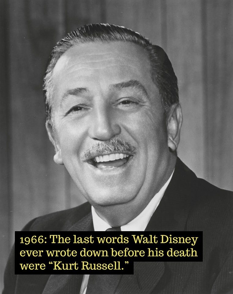 ▼1966年,華特迪士尼死前寫下的最後一串字是「寇特羅素」,那是一位動作巨星。