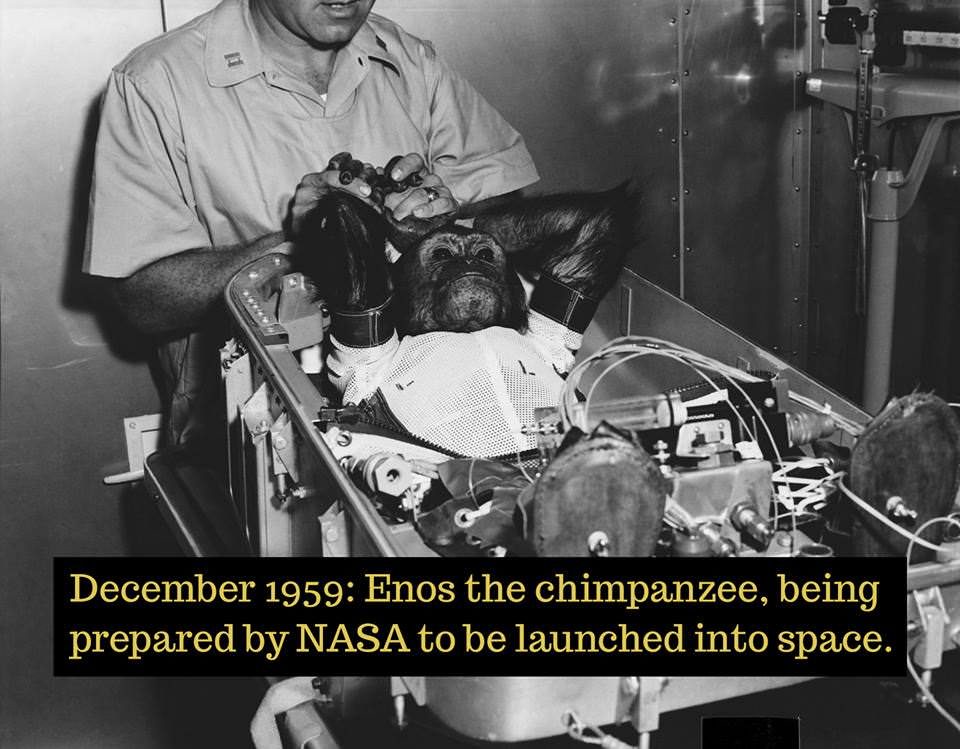 ▼1959年12月,NASA正準備將猩猩「伊諾斯」送上外太空。