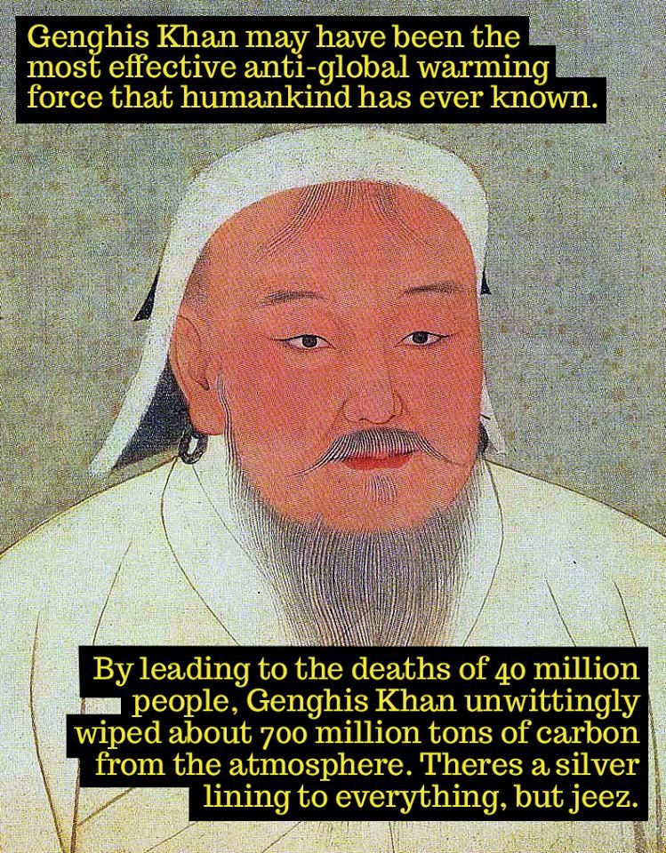 ▼成吉思汗也許是人類歷史上對反全球暖化做出最大貢獻的第一人,他一共殺了4000萬人。