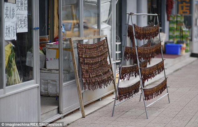 ▼當地人表示,活著晾曬林蛙,製成的雪蛤膏品相比較好。林蛙是野生動物,但不是重點保護動物,所以捕殺不算違法。