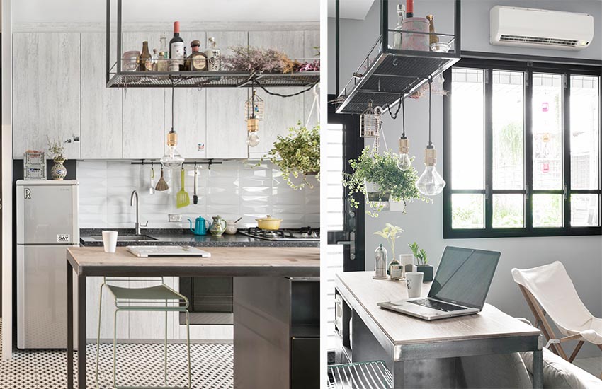 ▼餐廚起居區:廚房使用率很高,所以設計師用中島吧台整合了不同的生活機能。這個吧台能夠做料理,還能當餐桌、工作台。午後泡一杯咖啡,坐在這裡看看雜誌,就是文藝氣息十足的咖啡廳。