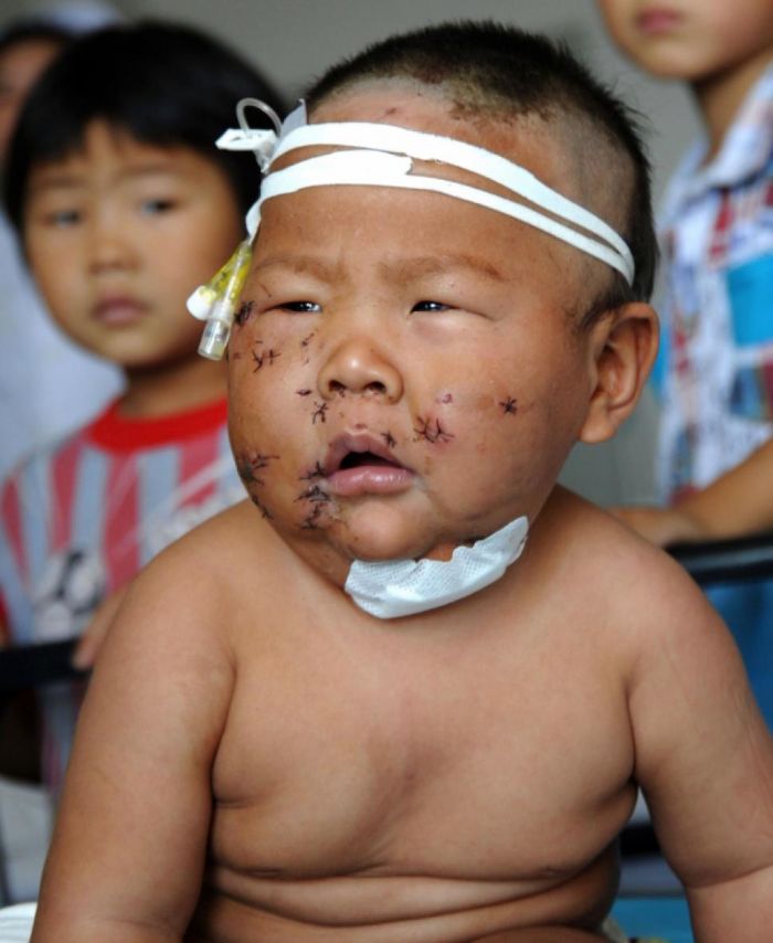 2017年11月22日中國杭州有一名外號小寶的男嬰,在8個月大時因為吸乳時因為太過用力,將母親的乳頭咬破導致她心生不滿,竟然隨手拿起旁邊的剪刀就往小寶身上刺去,造成他全身總共有90多處傷口,縫了100多針,簡直讓人不忍直視。