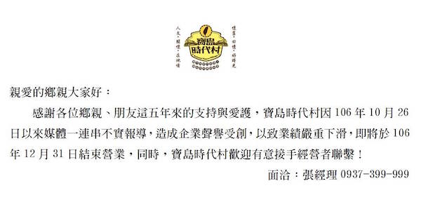 ▼日前,寶島時代村突然緊急發出公告,表示因為「媒體一連串不實報導,造成企業聲譽受創,以致業績嚴重下滑」,決定在今年年底結束營業,同時歡迎有意接手經營者聯繫!