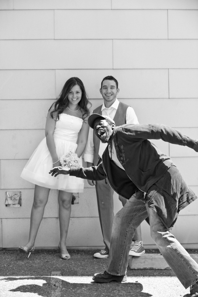 ▼被流浪漢亂入的結婚照。