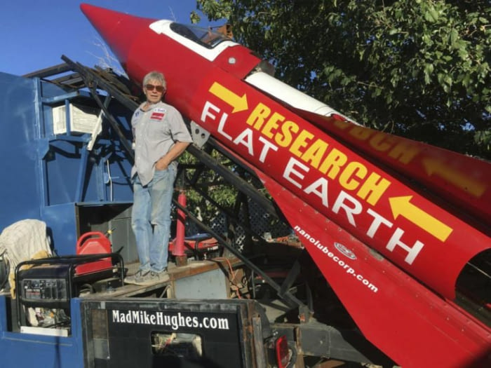 2014年時,Mike就曾經自製火箭,不過火箭飛到426公尺的時候失敗了,他也因此受傷。他沒有放棄,而是堅持想要推翻球體地球的理論,找到更多關於地球的秘密。他說:「這是一個很大的謊言,只要第一塊骨牌倒了,就會有更多人相信我們。」