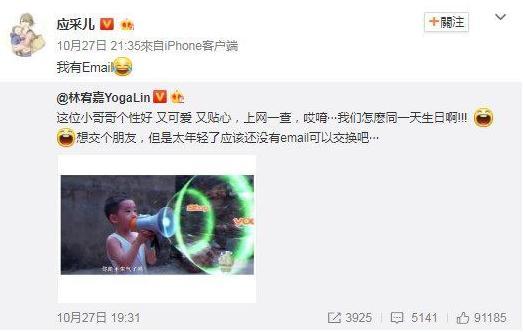 ▼這件事很快就引起了網友們的關注,Jasper雖然沒有出現,媽媽應采兒卻幽默回應「我有email」。