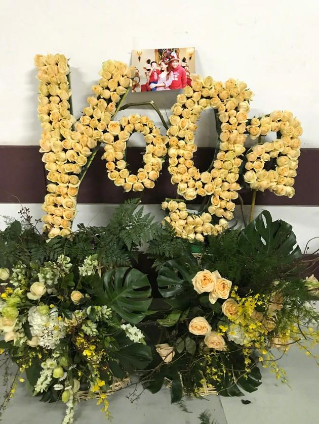 ▼本月25日,林宥嘉在北京舉辦演唱會,陳小春一家特別送上鮮花,用黃玫瑰拼成「Yoga」的字樣。