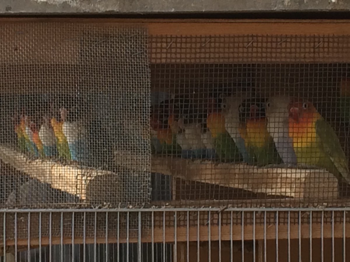 ▼一隻大黑鷹降落在院子裡,就停在鳥籠旁邊。平時聒噪的鳥們一個個超乖巧,站成一排不敢動,也不敢出聲。