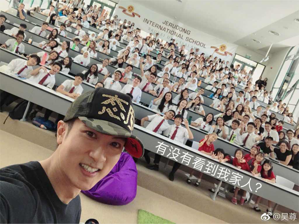 ▼本月29日,吳尊去汶萊當地的一所國際學校演講,老婆、兒女也在現場陪伴,他終於曬出了老婆的正面照。