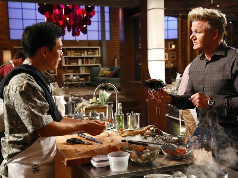 ▼當地獄廚神戈登問他打算怎樣料理這些食材時,正職為高中音樂老師的他回答:「我是教交響樂的,我要運用我的音樂味蕾,就像指揮家一樣製作出美味的料理。」之後他用蝦殼、蛤蜊、薑等食材做出美味的高湯,並加上青蔥、白味增和九層塔等,完成一碗創意的蛤蜊湯,搭配一旁的炸天婦羅,讓戈登吃完之後忍不住爆粗表示:「我他X的喜歡你!」