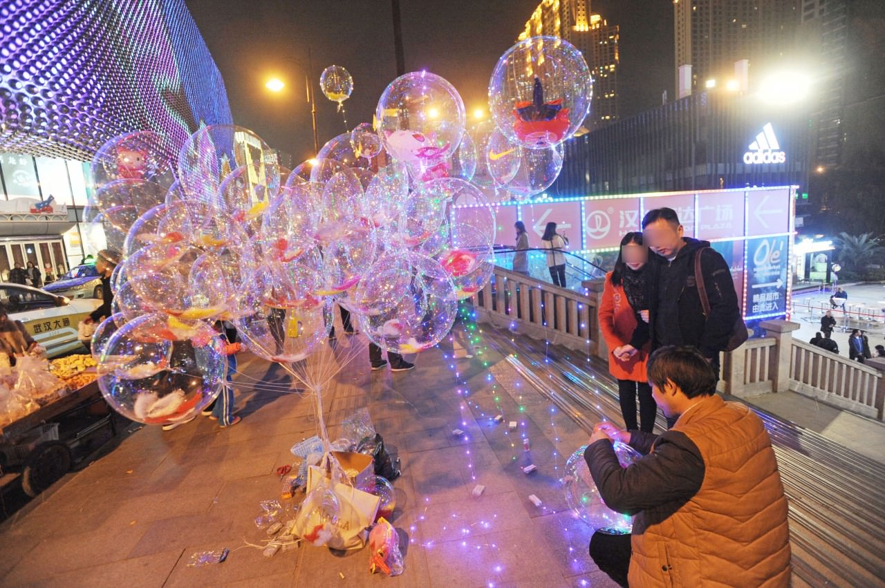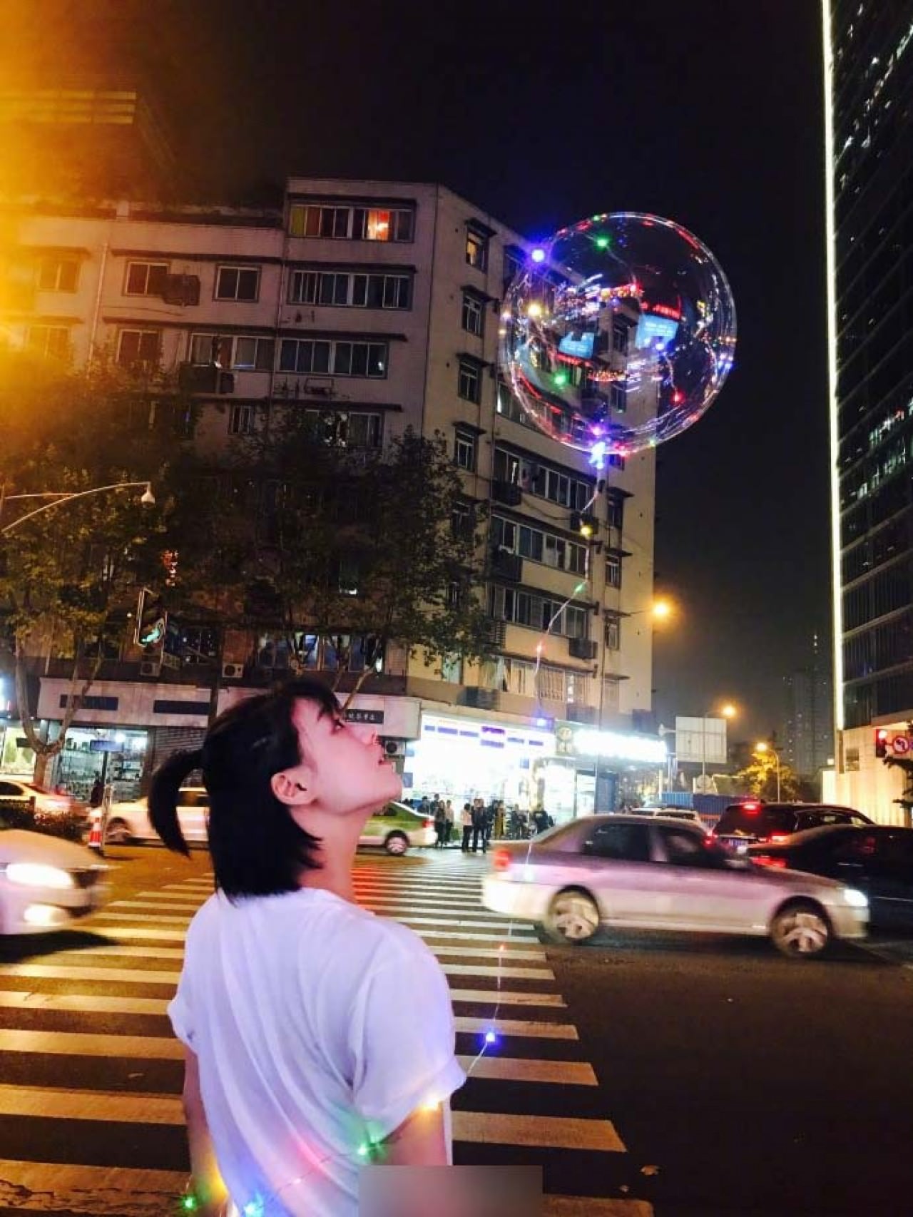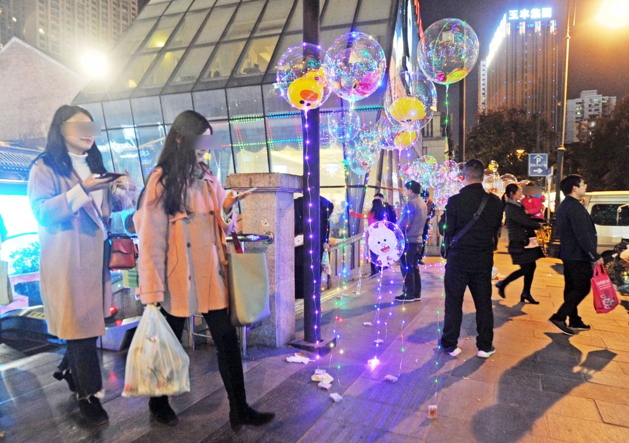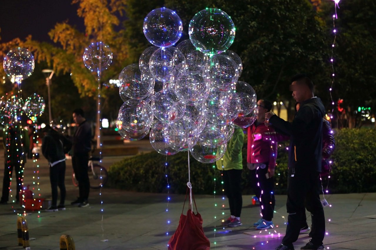 ▼發光氣球的組成其實很簡單,就是一顆氣球,外面捆滿一串彩色LED燈,再加上電池開關。裡面通常還會擺上小型的卡通氣球,可愛模樣成為網紅拍照新寵,因此網上常稱「網紅氣球」。