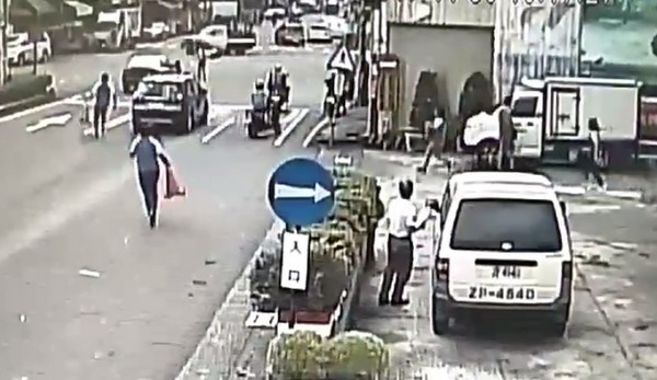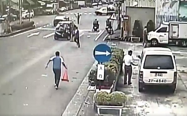 ▼從畫面中可以看到,一開始還有保持距離,似乎是因為車速過快,而導致後方來車輾壓到前方機車。這名70歲的女騎士躺在地上,頭部流血,剛好事發地點就在中油加油站附近,工讀生看到後,立刻以跑百米的速度衝出,還拿出三角錐幫忙指揮交通。一名具有護理背景的工讀生,還上前協助檢查傷勢,也有人幫忙報警,整個專業且有秩序的分工,讓網友讚聲不絕。