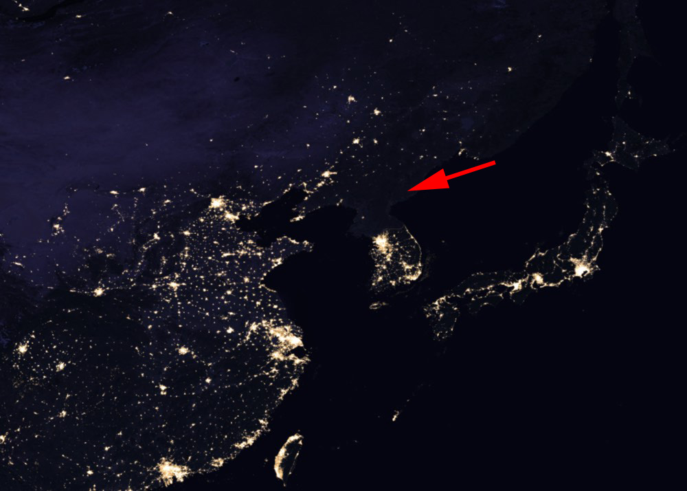 ▼漆黑一片的北韓也引起了很多人的關注,有人調侃:「北韓真是世界級節能愛地球的好榜樣」,還有人笑說:「是不是金胖子在打PS4?」