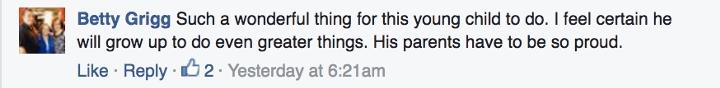 ▼「這個小孩做的事超棒,他長大後一定會做更偉大的事,他的爸媽一定很驕傲。」