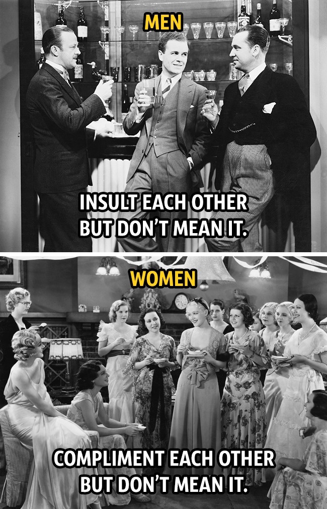 ▼男生:互嗆只是開玩笑;女生:互相讚美但不真心。