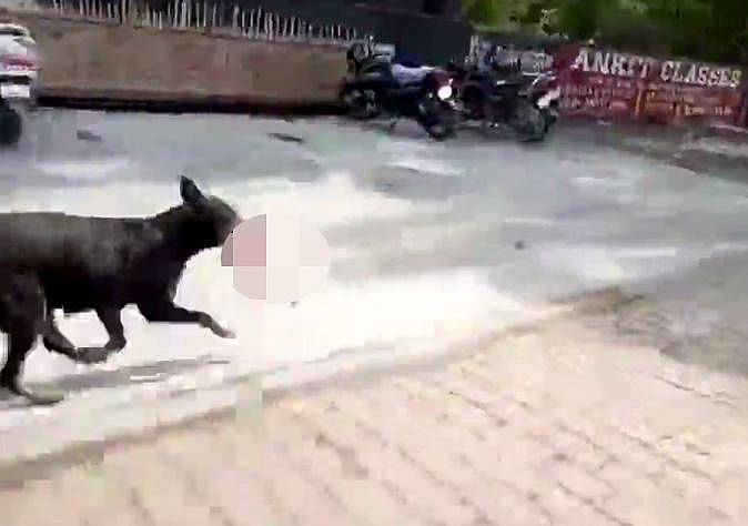 2017年12月08日前幾天,印度中央邦戈帕爾甘傑的一名網友在醫院附近拍攝到了可怕的一幕。一隻黑色的流浪狗叼著一個出生沒多久的嬰兒,匆匆穿越街道。這個嬰兒是牠從醫院中偷出來的。