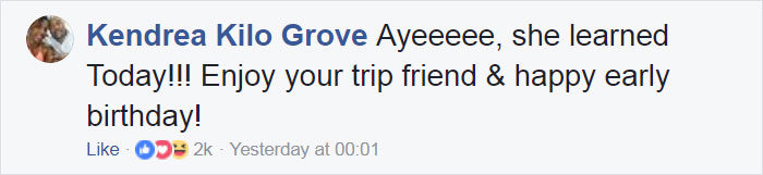 ▼「今天她得到教訓了,玩得開心朋友,提前祝你生日快樂!」