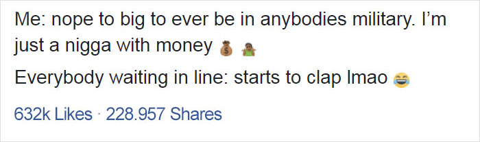 ▼Walker忍不住了:「不好意思喔,我太大隻了從來沒當過兵,我就是個有錢的黑鬼而已!」