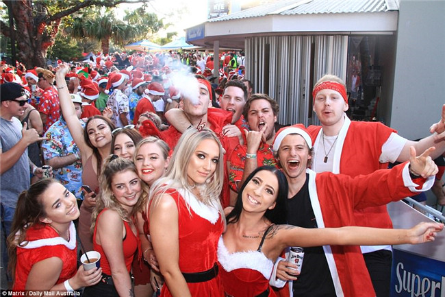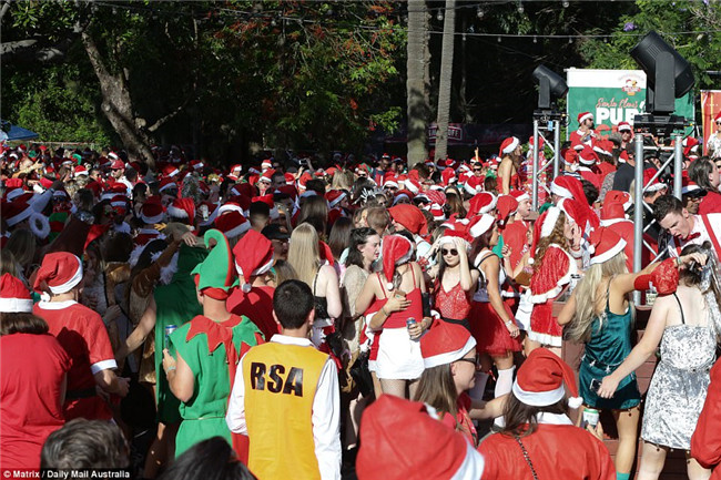 ▼這裡是澳洲最大的酒吧之一,狂歡者們穿著漂亮的聖誕服裝,手裡拿著酒,走上街頭,享受著聖誕的節日氣氛。