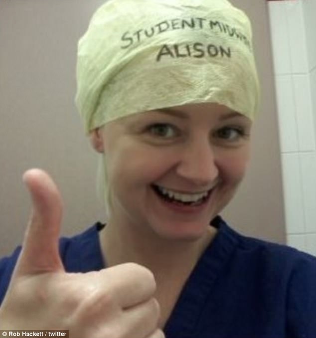 ▼半年前,Hackett在手術帽上寫下了自己的名字和職務,剛開始大家覺得傻傻的,但後來發現真的很好用,就開始推廣開來。