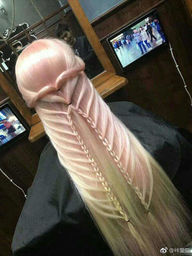 2017年12月14日前幾天,一名大陸網友在微博分享了一張照片。照片中,一名正妹將粉紅色的長髮加上了辮子設計,看起來很美。不過很多人一眼看去卻覺得這髮型超像GG。