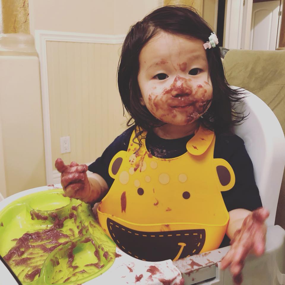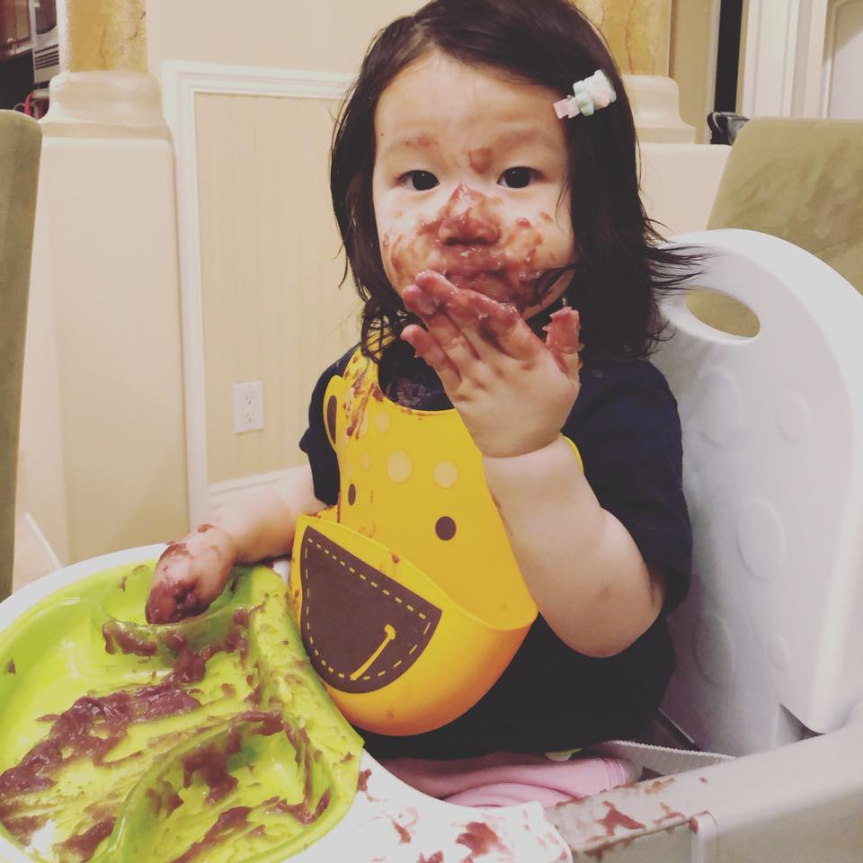 雖然孩子吃得一團糟,清潔起來很麻煩,但看到小孩的笑臉,這些都不算什麼啦~