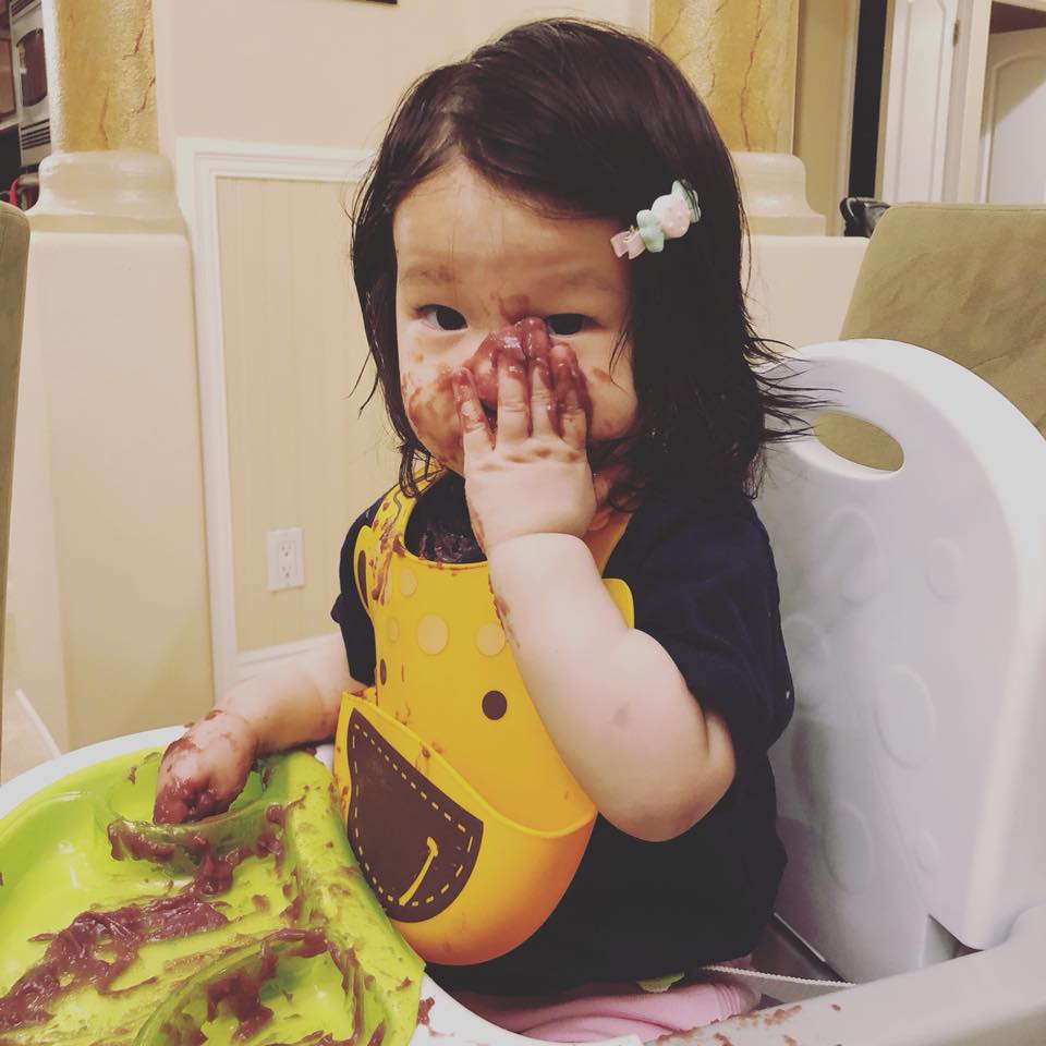 隋棠女兒吃飯「玩食物」吃到滿臉滿地都是,但是她卻淡定拍照上傳臉書「網友秒讚爆」