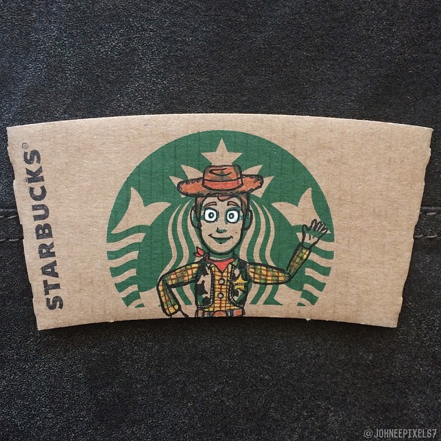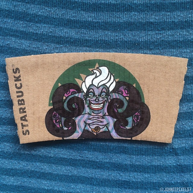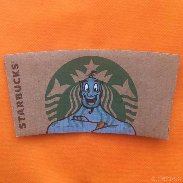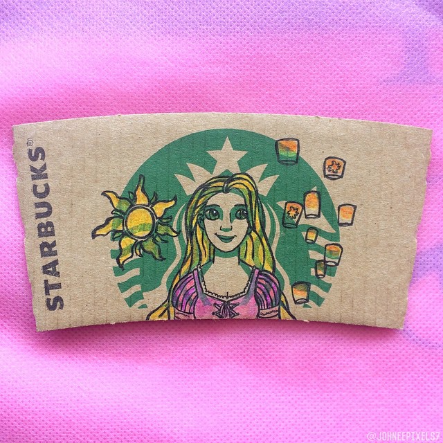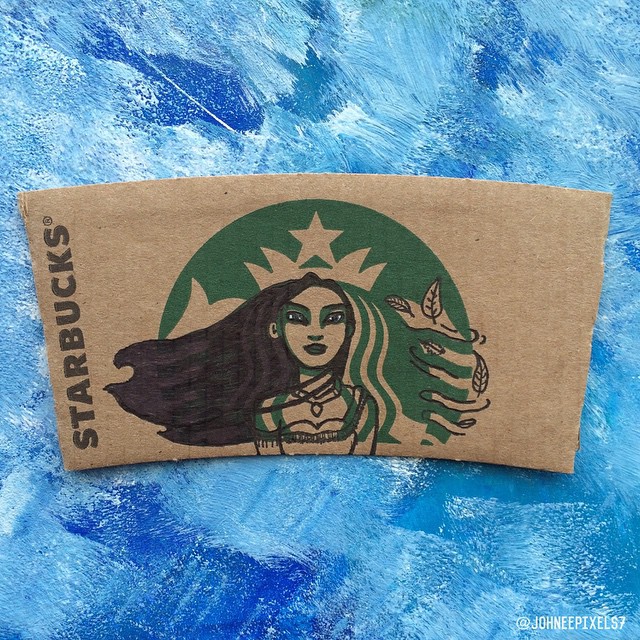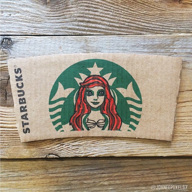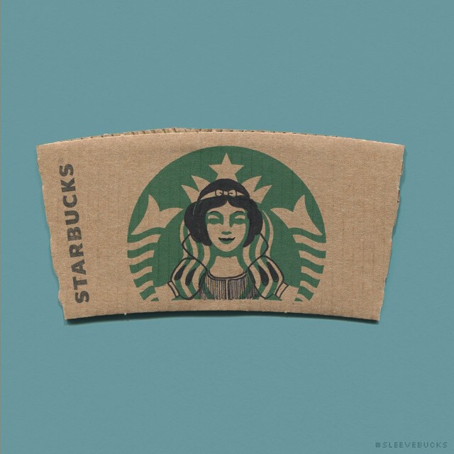 「再忙也要喝杯咖啡」,台灣人愛喝咖啡出了名,這也讓星巴克越來越受歡迎。我們都知道,星巴克的咖啡杯配有杯套,大多數人會直接扔掉,但藝術家們卻重新利用了起來。插畫家Johnee Ayson就將杯套上的女神加工了一下,變成了我們超熟悉的迪士尼人物。