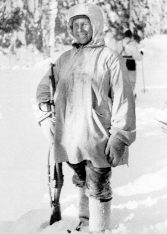 ▼1905年12月17日,Simo出生於現今芬俄邊界的卡累利阿共和國 (Karelia),長大後他成為了一名農民,平時的愛好是滑雪、打獵、射擊,20歲那年他進入陸軍服役。1939年蘇聯與芬蘭爆發冬季戰爭,33歲的Simo也被派到了戰場上。