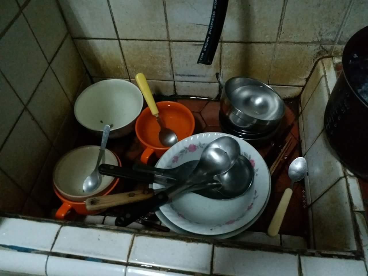 ▼廚房泛黃的水槽裡堆滿用過的碗筷,她看到後超崩潰,憤怒表示:「請不要當這裡是飯店,家裡還有我ㄤ、他媽他姐他妹,就是沒人要洗。我不是菲傭好嗎?」