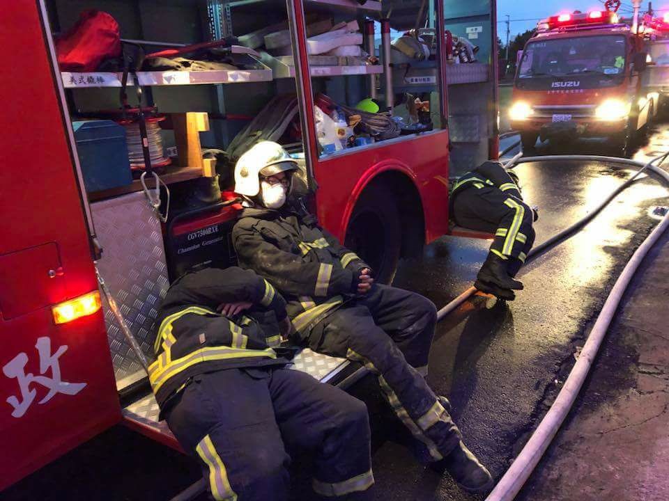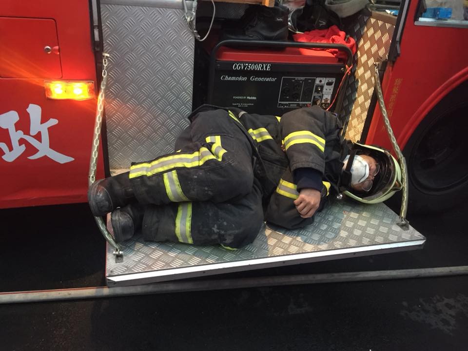 整夜火警消防員奮戰到凌晨 13度低溫「累癱睡車踏板」網友心疼致敬