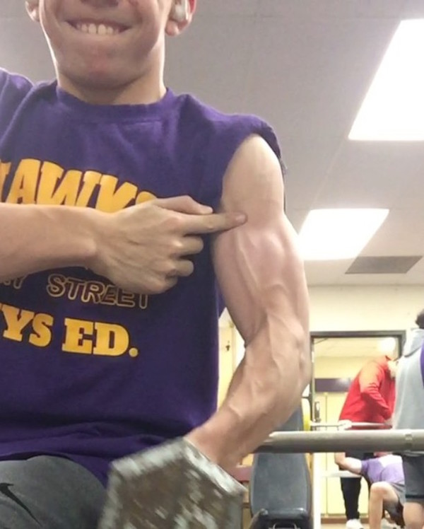 ▼他有著非常粗壯的手臂和大腿,完全不是我們認知的15歲少年身體!