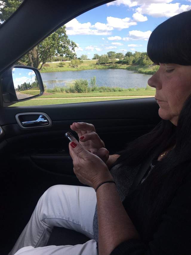 ▼左手拿手機,用右手的食指或中指點熒幕的方式,好像真的是許多媽媽們愛用的使用手機方式!