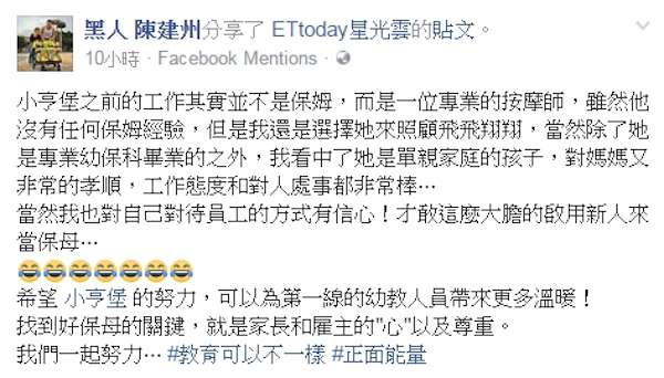 ▼小亨堡(左)成為飛飛翔翔的保母後爆紅,還曾被黑人惡整,讓網友又笑又同情。黑人和范范也指出小亨堡先前其實沒有當保姆的經驗,但看他是單親家庭的孩子,對媽媽又孝順,「工作態度和對人處事都非常棒」,才大膽啟用新人,讓人倍感溫馨!