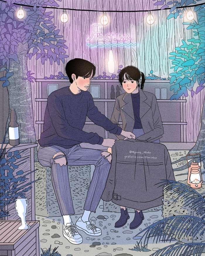 這些插畫真是太溫馨了,你腦海中是不是也立刻浮現了與另外一半的相處時刻呢?不過對單身狗來說,這也是巨大的爆擊啊!(哭)