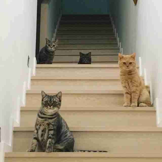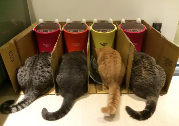主人太有心了,為了讓貓咪們專心吃飯付出了超多。4次貓咪一起跑進去吃飯的樣子讓人心都融化了~