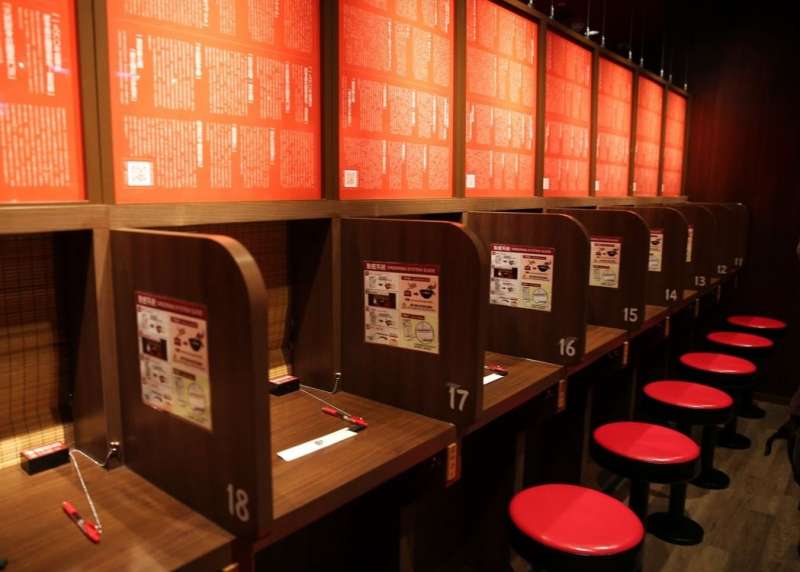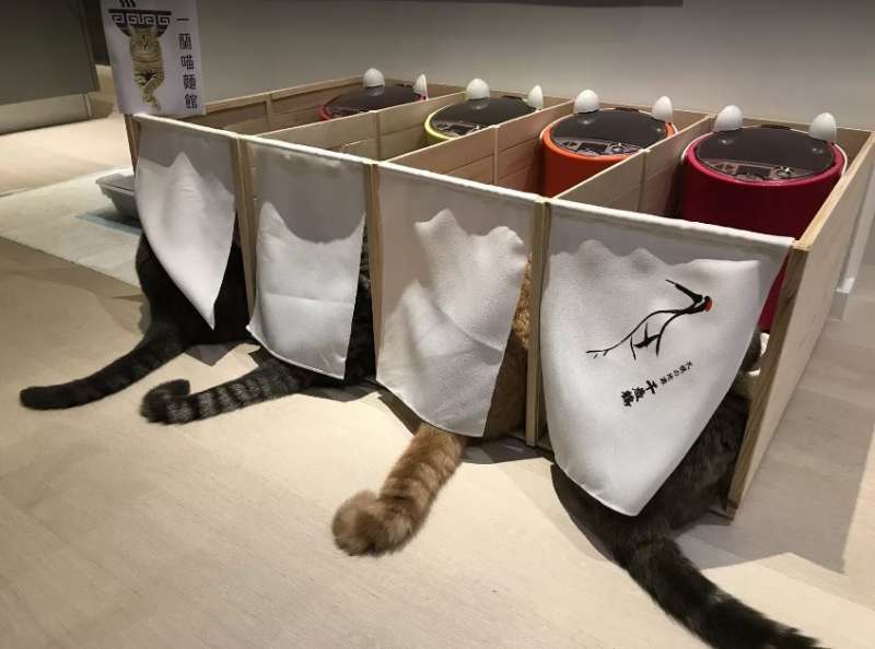 ▼這是貓咪們到「一蘭喵麵館」吃飯的模樣。
