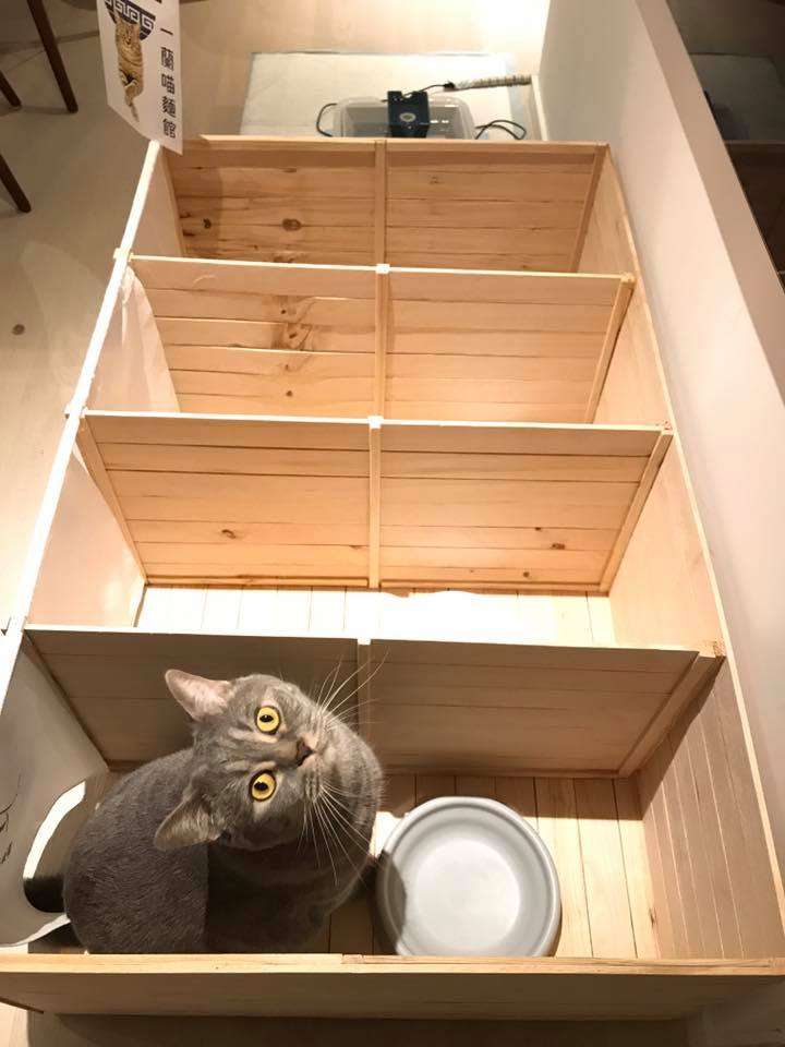 ▼朋友過來玩,發現這個「貓咪餐廳」超像「一蘭拉麵」,都是一格一格的設計。主人靈感爆發,決定升級一下,讓貓咪們到「一蘭喵麵館」用餐。