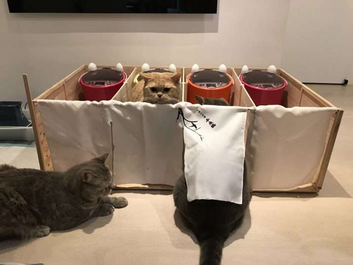 ▼為了確保每隻貓咪都能吃飽飯,主人用簡易紙箱把牠們分隔開,吃飯的時候誰都看不到誰,這下不能搶別人的飯了吧。