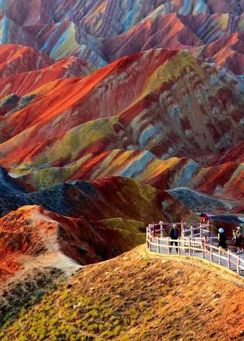 ▼彩虹山:這些山位於中國甘肅張掖丹霞地貌地質公園,2009年時被聯合國教科文組織列入世界自然遺產名單。這些山之所以色彩豐富,是因為石頭中含有礦物質、氧化鐵等等。
