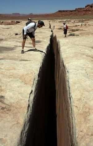 ▼白緣步道的裂縫:這個裂縫位於美國峽谷地國家公園,是自然形成的,現在已經成為了當地的知名景點。