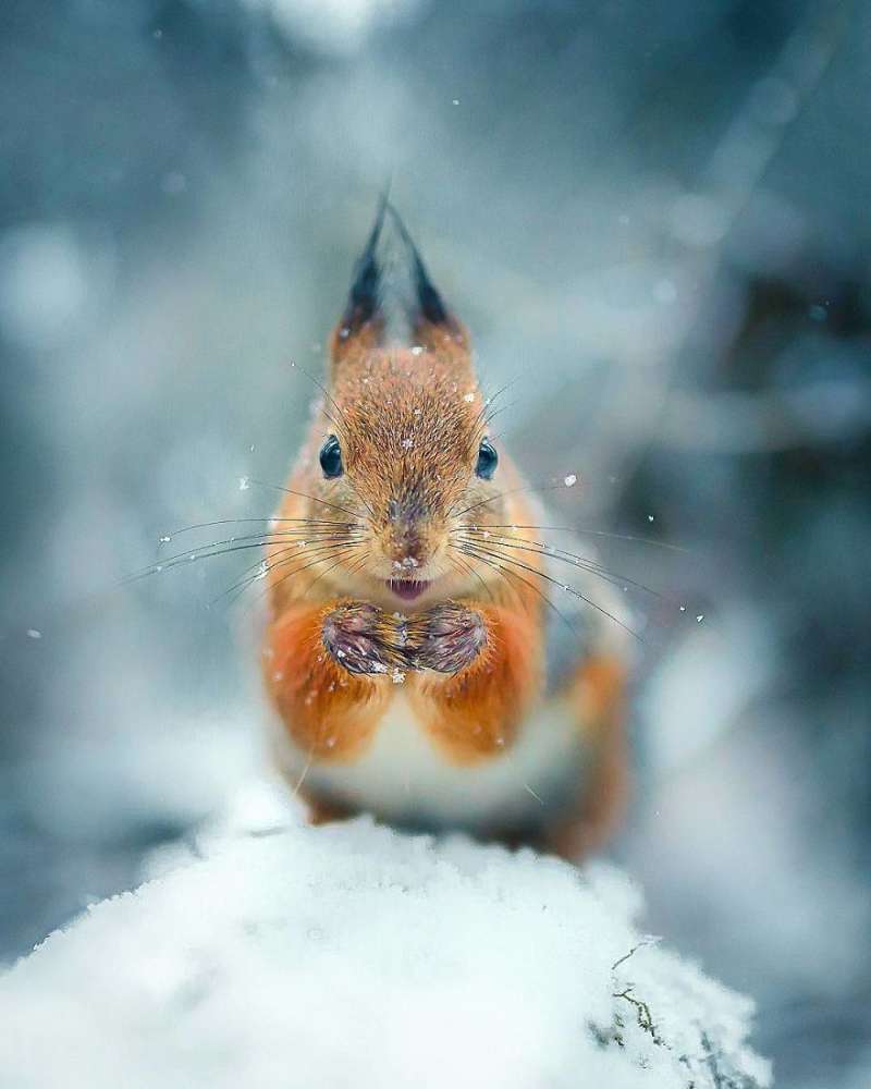▼寒冷的冬天到來,動物們仍舊活躍。牠們在風雪中尋找食物、躲避天敵,順便當Joachim的模特兒,對著鏡頭賣萌。