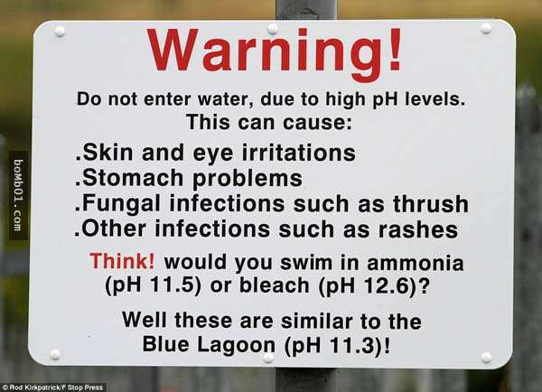 警告!禁止入水,由於水的PH值很高,它們可能會導致以下疾病: